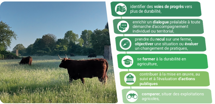 La méthode a été pensée pour mesurer la durabilité de tous les grands système de production en France métropolitaine et en Europe : grandes cultures, élevages, maraîchage, viticulture, arboriculture,... Elle permet d'identifier des voies de progrès vers plus de durabilité dans les démarches individuelles ou collectives de transition agroécologique.