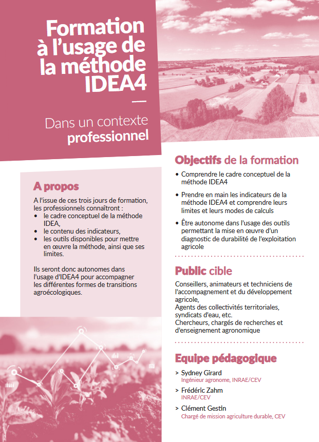 L’objectif de la formation est de permettre aux professionnels de se former à l’évaluation de la performance globale (niveau de durabilité) d’une exploitation agricole à partir de la méthode IDEA4 afin d'accompagner les différentes formes de transitions agroécologiques.