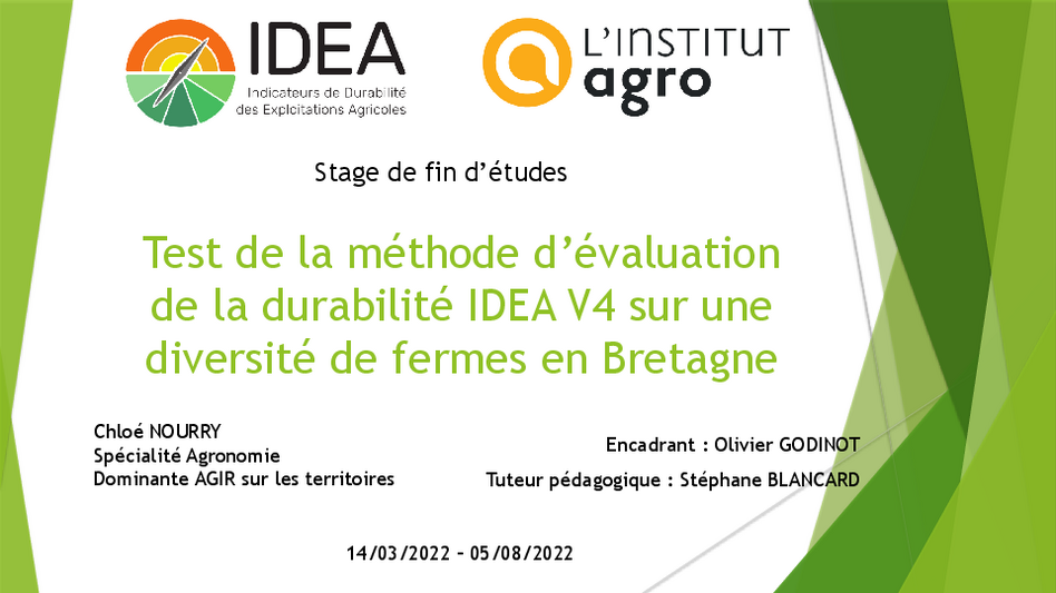 - Test de la méthode d’évaluation de la durabilité IDEA 4 sur des fermes en Bretagne :